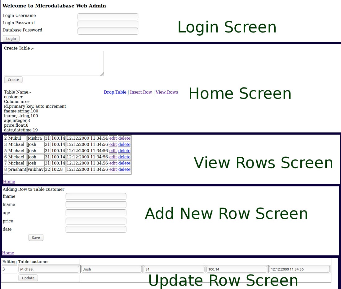 We felt the need for an online tool to manipulate the database apart from the regular SQL. So we are launching the Web Admin version for Microdatabase. This web version offers an online tool that performs the same task that Microdatabase SQL does. But it is more easy to use and manage the database, as you do not have to remember the SQL for every operation.