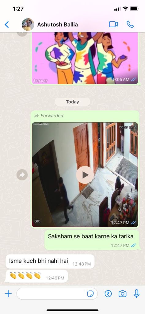 This video was shared with another person named Mr. Ashutosh Mishra, a diploma holder in Civil Engineering who worked in the middle east also and a resident of Belthara road, Ballia . His reaction from whatsapp is attached.