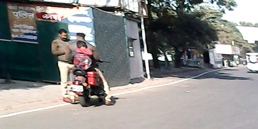 Here is a morning photograph of U.P. Policemen on the way to send a 7 year old kid to CMS gomti nagar, Lucknow without wearing a Helmet.