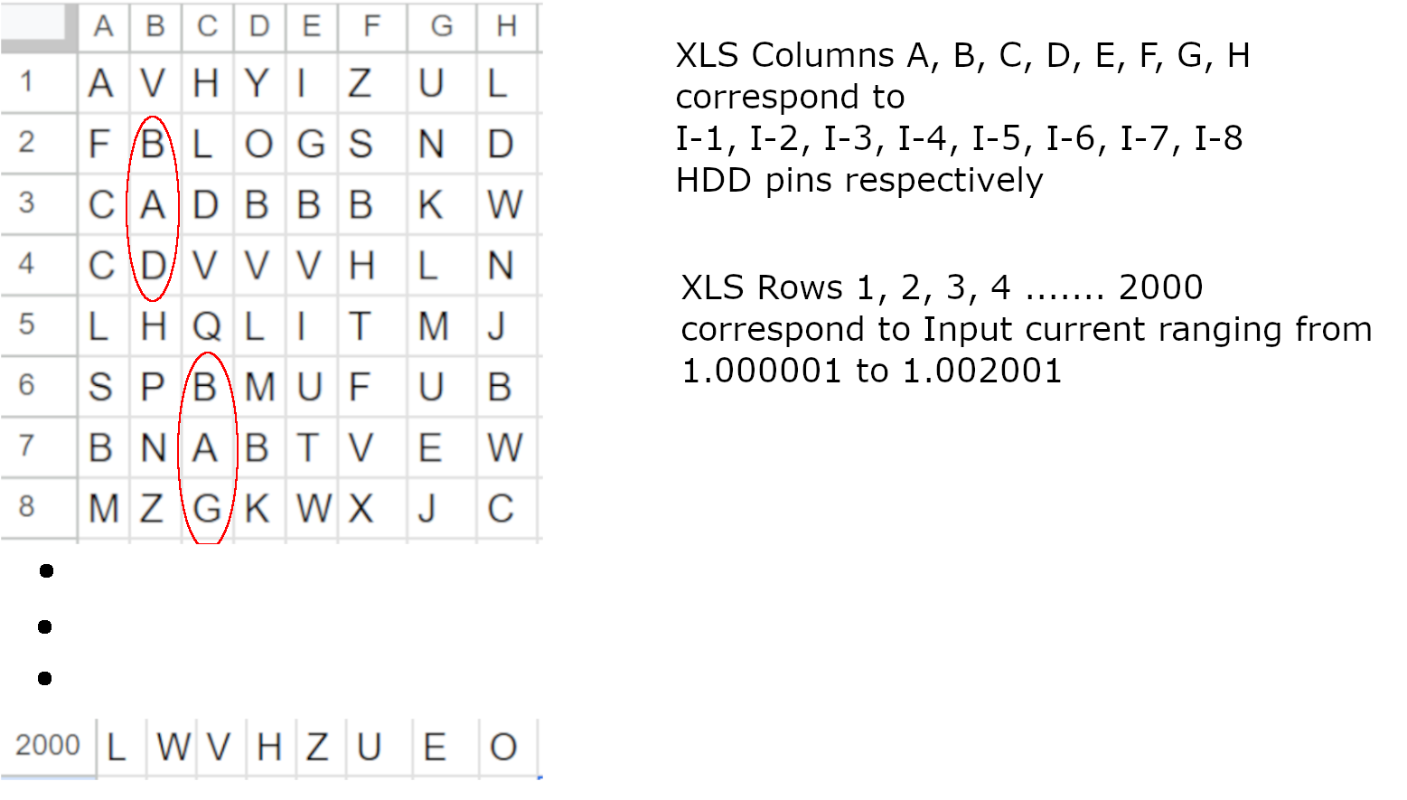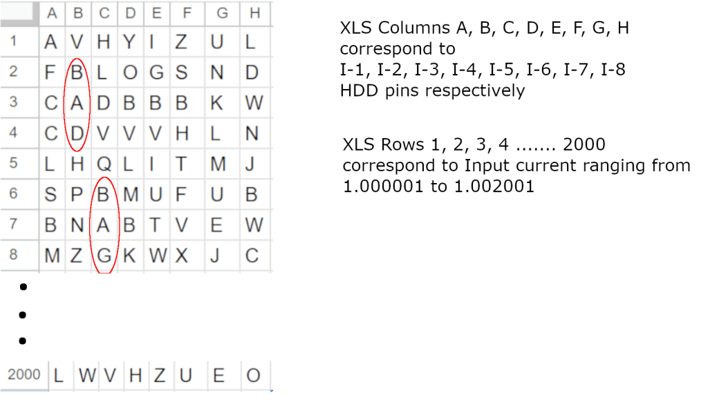 | Input Pin for HDD | Current Passed | Output current | Mapped to Alphabet |